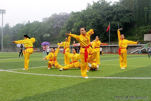 此次比赛中,我院学子总共参加了11个比赛项目。在一场地首先进行的是女子乙组自选刀术。紧接着是长拳比赛,这个比赛队伍全部由我院的女生组成。即使天空下着蒙蒙细雨,她们依旧着装统一,从容淡定的走进比赛场地,丝毫不受小雨的影响,强健有力的拳术配上激昂的音乐吸引了田径场上大多数人的目光。音乐结束后,大家也都纷纷鼓掌,以此来表示对这场精彩拳术的肯定与赞赏。除此之外,其他场地的不同比赛项目也都在如火如荼的进行着。