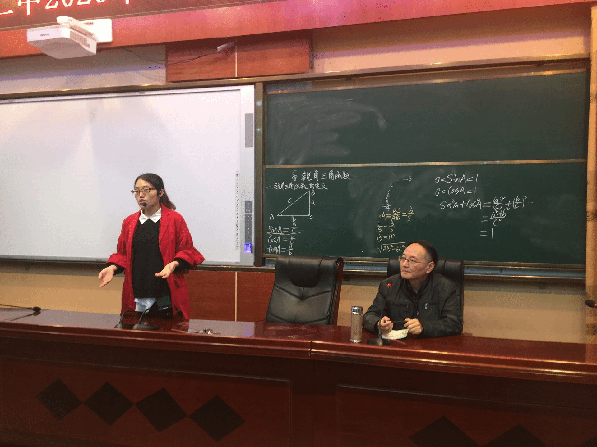 在正式开课前,赵思林教授首先对同学们的观摩提出了要求,在观摩过程中要做好笔记,希望同学们学会欣赏,“会欣赏才会分享”。此次见习课程是由李君老师准备的初三年级的新知识——锐角三角函数教学课程,李君老师作为内江二中“名师工作室”的成员,在上课过程中自信幽默,新旧知识融会贯通,时刻注意同学们的学习进度,多角度、多方法启发同学们的思维,激发同学们的学习兴趣。课堂上同学们学习兴趣浓厚,积极与老师互动,主动学习思考,营造了一个轻松愉快的课堂氛围。李君老师讲课结束后,现场迸发出热烈的掌声,同学们向老师深深地鞠躬致谢。