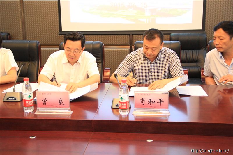 在热烈的掌声中,我校副校长曾良与资中县教育局局长肖和平签署了战略合作框架协议。